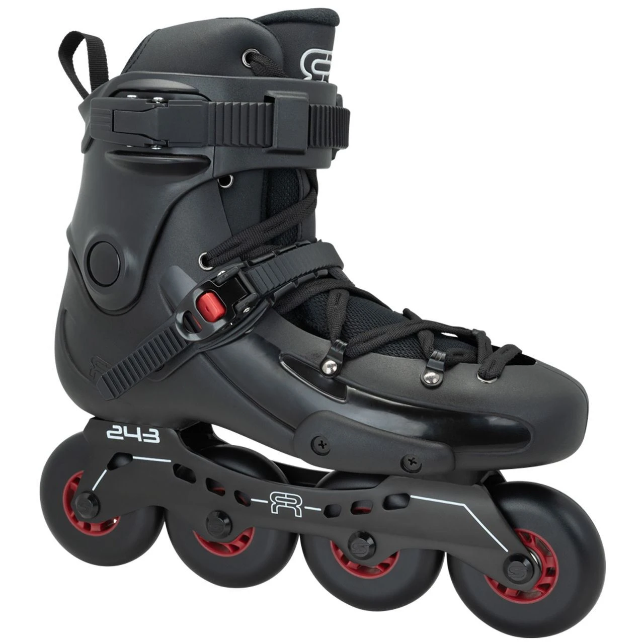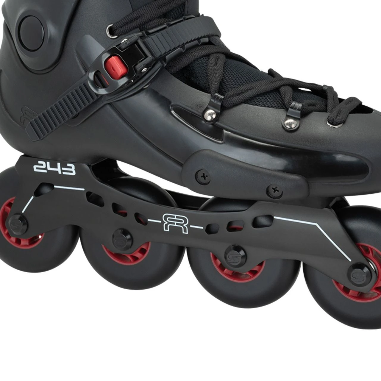 Liner: Removable with Carry Strap Insoles: Standard Closure: Safety Buckle, Standard Rachet Buckle PowerStrap, Laces Cuff: Riveted (fixed) Frame: XSeries Rockerable 243mm Aluminium with 2 Piece Axles Wheels: FR Street Kings 80mm / 85a Bearings: Abec 7 Hardware: 6mm Colours: Black / Red Use: FreeRide, City Skating