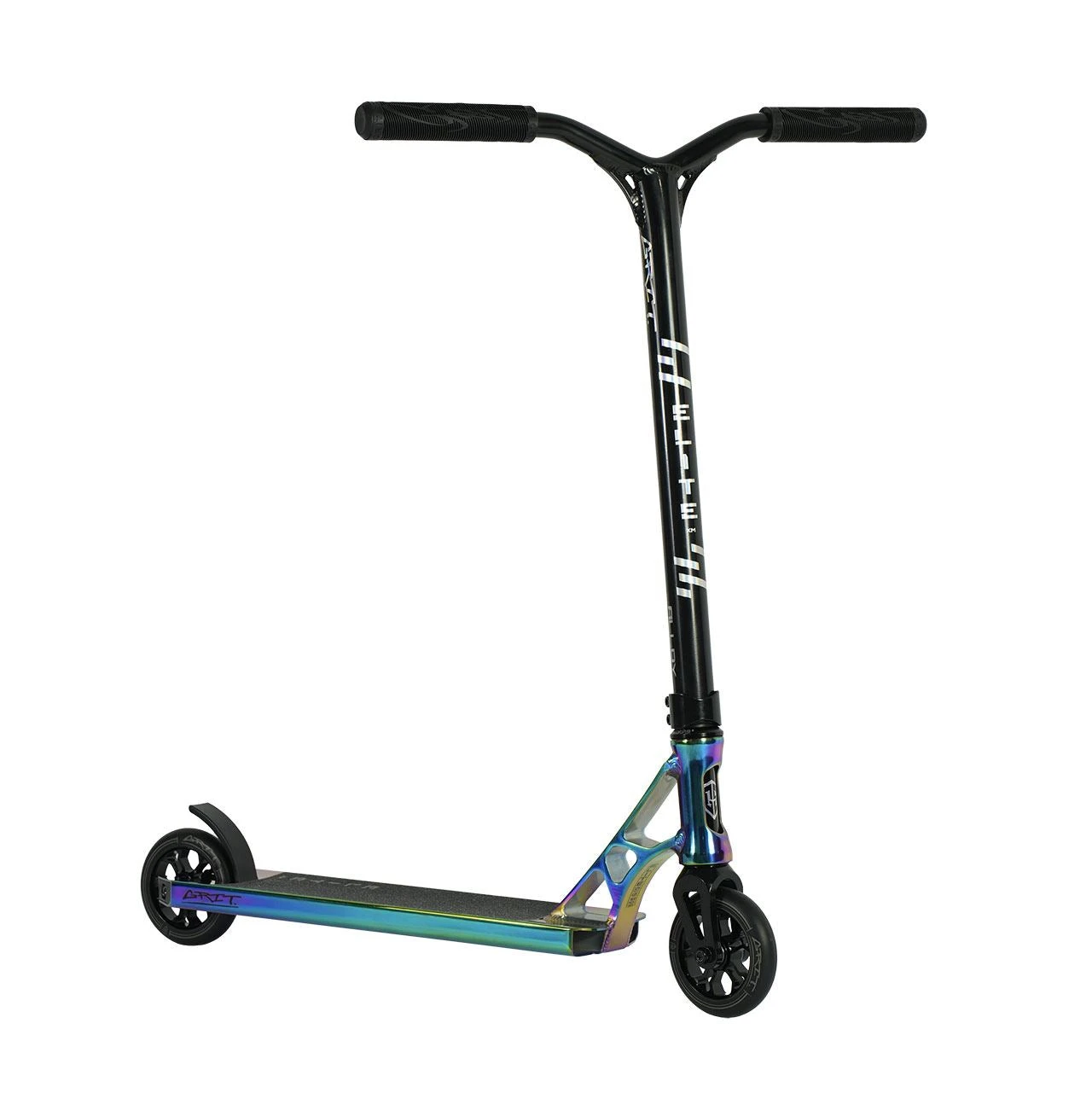 Tested and approved by the GRIT PRO team| the new GRIT ELITE is up for anything the experienced rider can throw at it! Boasting a not only a fresh set of colour schemes but a NEW skeletonized neck tube| integrated headset| wider wheels and a nylon deck inserts| the ELITE is an unbeatable choice when deciding on a new scooter for the future professional!