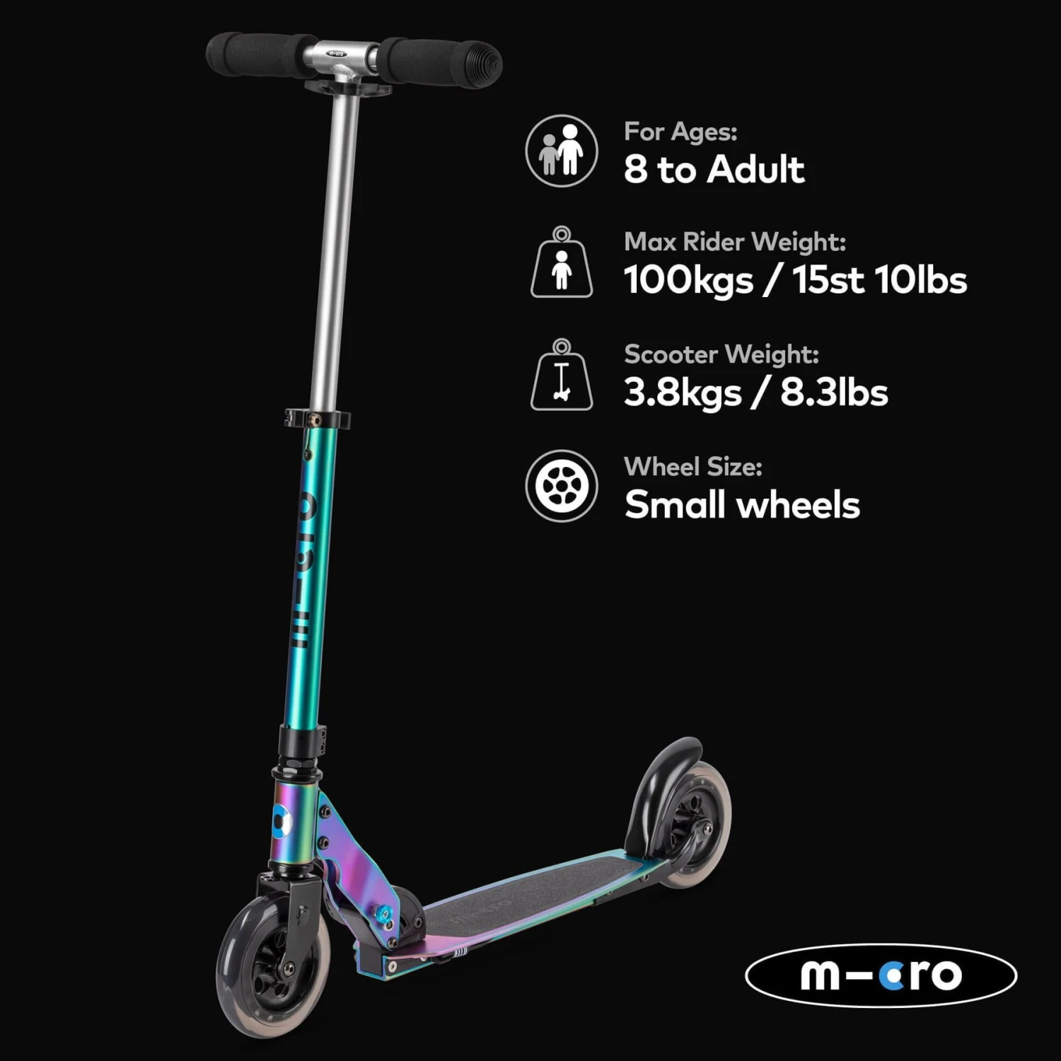 The Micro Speed is the perfect companion for hop-on, hop-off journeys. But it’s far more than a portable friend. Its small 145mm wheels are perfectly proportioned – large enough to move at pace but not so big that they compromise on weight.