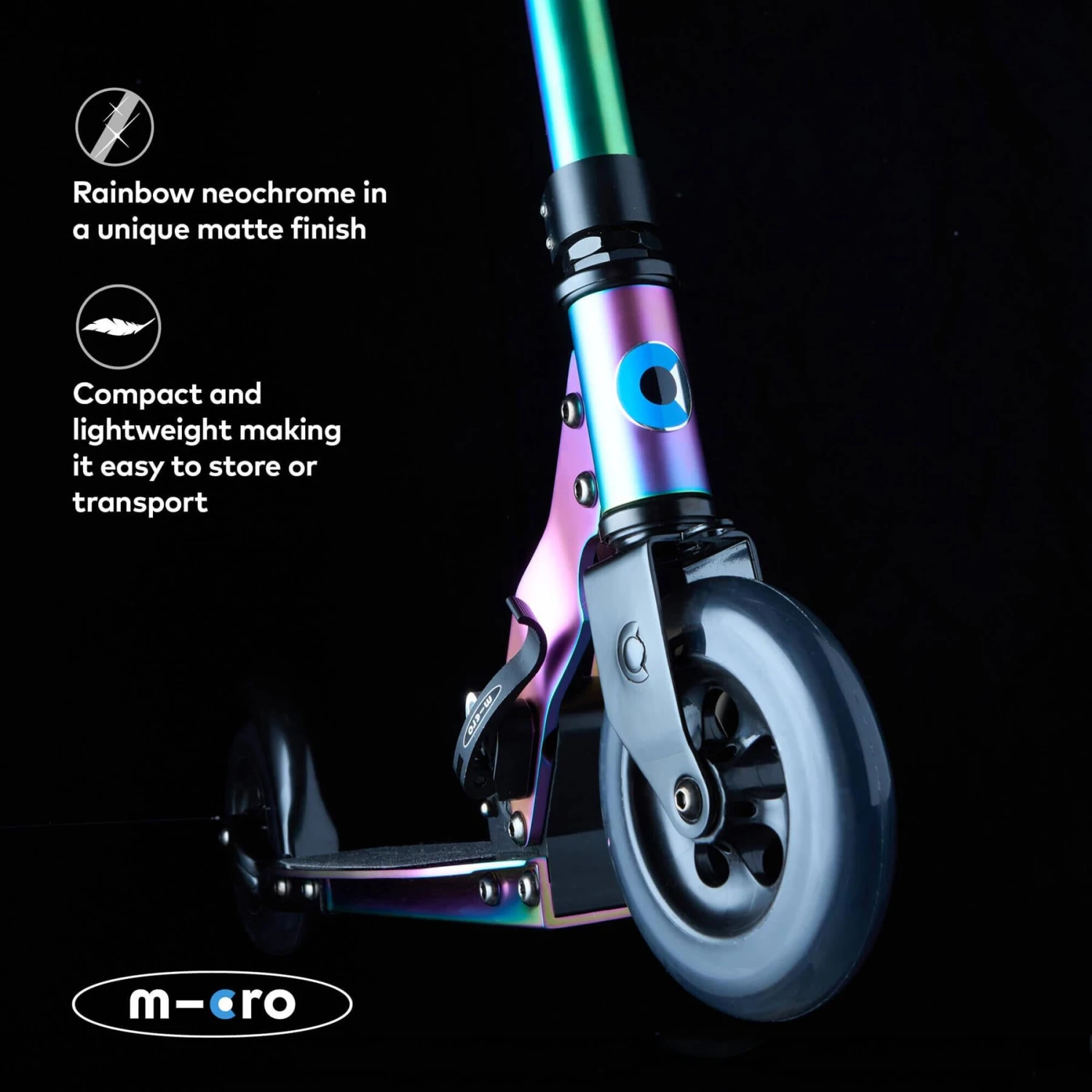 One of our lightest scooters, the Micro Speed, comes at a nifty 3.9kg, making it easy to store or transport. It also folds in a flash and stands independently, thanks to its handy kickstand. No more leaning the scooter against walls.