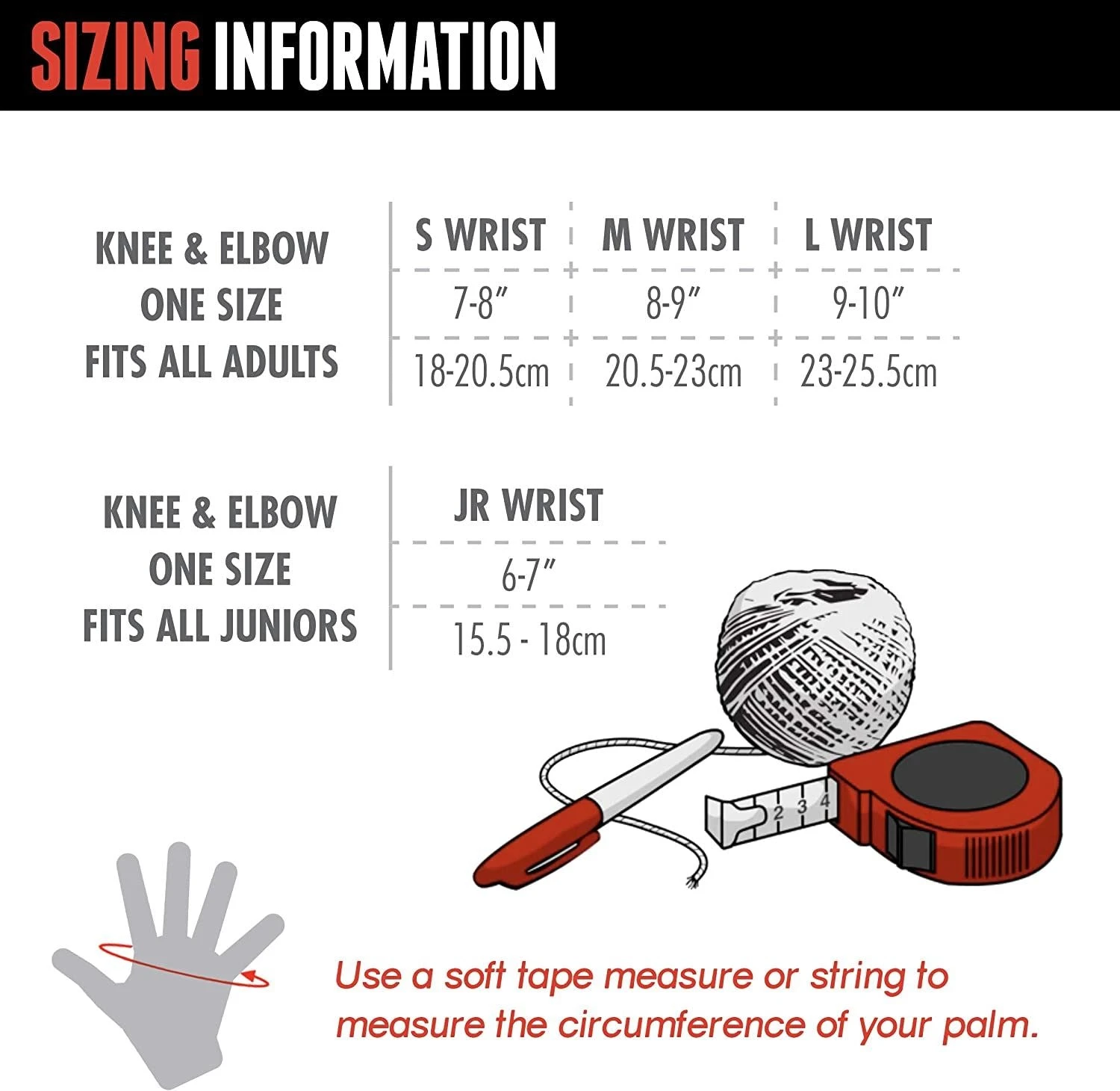 Wristsaver To ensure the Wristsaver fits perfectly, measure hand circumference at the knuckles and match to the sizes listed below: